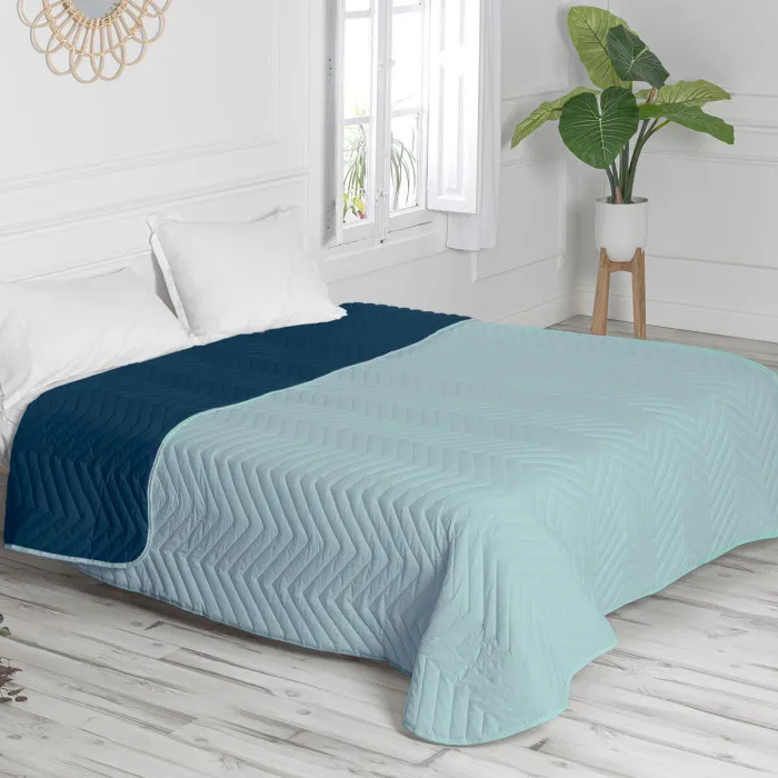 Colcha Reversible HappyFriday Basic Arista Azul marino Menta 270 x 260 cm
