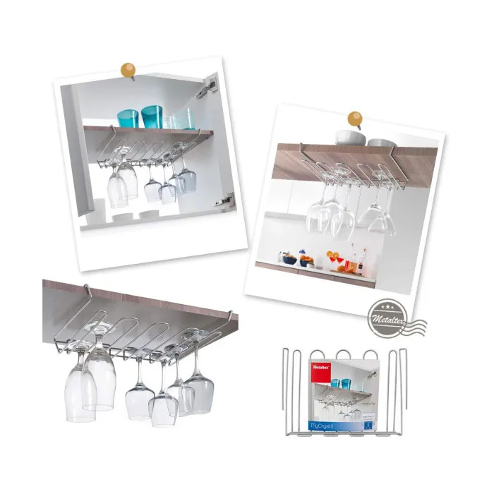 Imagina ser el anfitrión de una reunión con amigos o familiares, donde la atmósfera se eleva por la presencia de copas ordenadamente dispuestas. El soporte Metaltex My-crystal no solo ayuda a mantener tu espacio ordenado, sino que también añade un toque de sofisticación a la decoración de tu mesa. El diseño minimalista asegura que tu vajilla de vidrio siga siendo el punto focal, mientras que el material duradero garantiza un uso prolongado. Este soporte es perfecto para fiestas, celebraciones o uso diario, convirtiéndose en un accesorio versátil para cualquier hogar. Además, con su construcción resistente, puedes confiar en que tus copas se mantendrán organizadas e intactas.