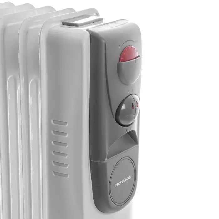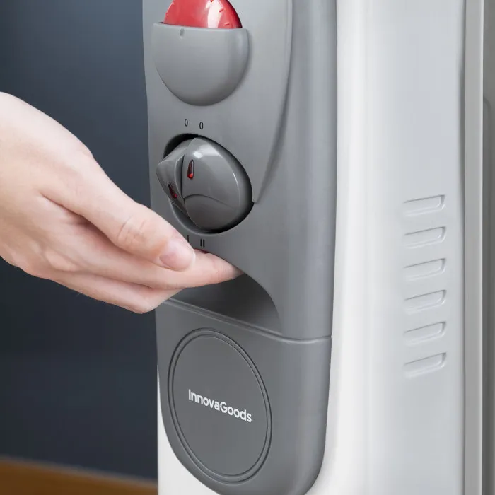 El radiador de aceite Oileven InnovaGoods es perfecto para calentar cualquier estancia del hogar durante el invierno. Este potente radiador de aceite con 11 cuerpos proporciona un reconfortante calor de forma limpia, eficiente, segura y silenciosa. Además, permite seleccionar el nivel de potencia y de temperatura con un máximo aprovechamiento de la energía consumida. Dispone de asa y ruedas para un fácil manejo y traslado de un lugar a otro de la casa. Su compartimento recogecable es de gran utilidad para guardar el cable cuando el radiador no se utiliza.