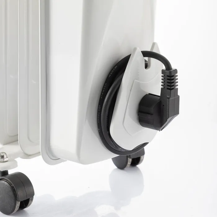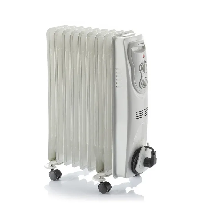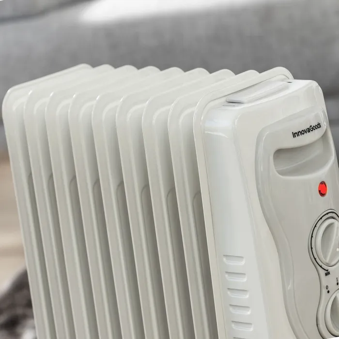 El radiador de aceite Oinine InnovaGoods es perfecto para calentar cualquier estancia del hogar durante el invierno. Este potente radiador de aceite con 9 cuerpos proporciona un reconfortante calor de forma limpia, eficiente, segura y silenciosa. Además, permite seleccionar el nivel de potencia y de temperatura con un máximo aprovechamiento de la energía consumida. Dispone de asa y ruedas para un fácil manejo y traslado de un lugar a otro de la casa. Su compartimento recogecable es de gran utilidad para guardar el cable cuando el radiador no se utiliza.