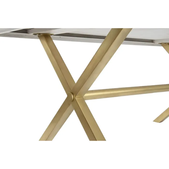 Mesa de Comedor DKD Home Decor Blanco Dorado Latón Madera de mango 180 x 90 x 76 cm