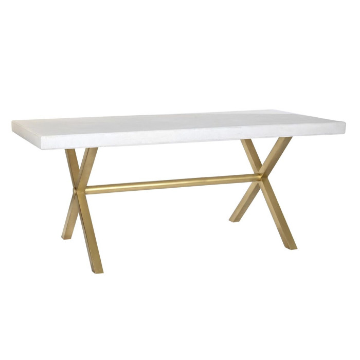 Mesa de Comedor DKD Home Decor Blanco Dorado Latón Madera de mango 180 x 90 x 76 cm