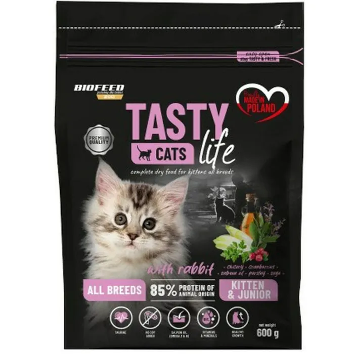 ¿Estás buscando la comida perfecta para satisfacer el paladar de tu querido felino? ¡No busques más! Comida para gatos Biofeed Tasty Cats Life Conejo está formulada específicamente para ofrecer a tu gato una experiencia de comida deliciosa y nutritiva. Hecha con sabor a conejo de alta calidad, esta comida para gatos es una opción irresistible incluso para los más exigentes. Imagina a tu amigo peludo disfrutando de un festín sabroso que imita a su presa natural, asegurando que sus papilas gustativas se deleiten en cada comida. Cada bocado está lleno de proteínas, lo que la convierte en una excelente opción para los gatos jóvenes en su fase de crecimiento, ayudándoles a desarrollar músculo y mantener un peso saludable.