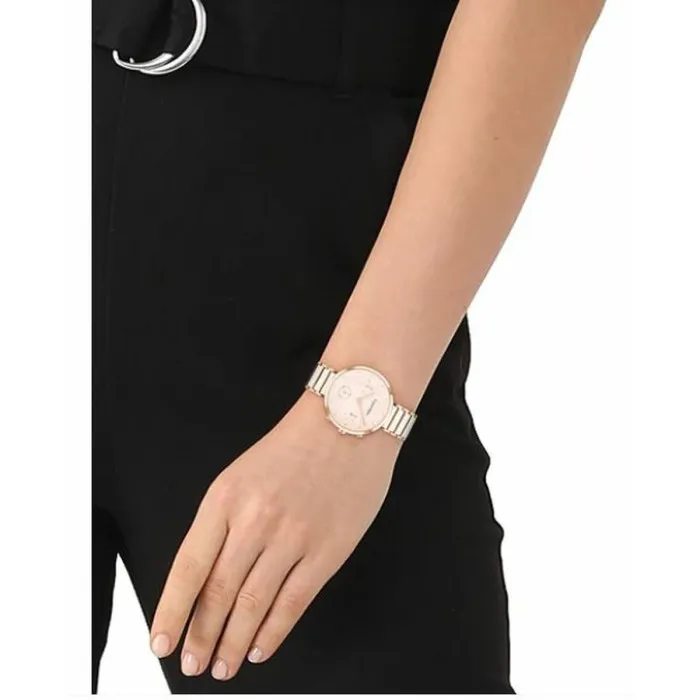 El reloj cuenta con una duradera pulsera de acero inoxidable que no solo garantiza longevidad, sino que también ofrece comodidad en tu muñeca. Está complementado por un cristal mineral bellamente elaborado que protege la esfera del reloj de arañazos, manteniendo su apariencia prístina a lo largo del tiempo. Con una clasificación de resistencia al agua de 3 ATM, puedes llevarlo con confianza en diversas situaciones, ya sea que asistas a un evento formal o disfrutes de una salida casual.