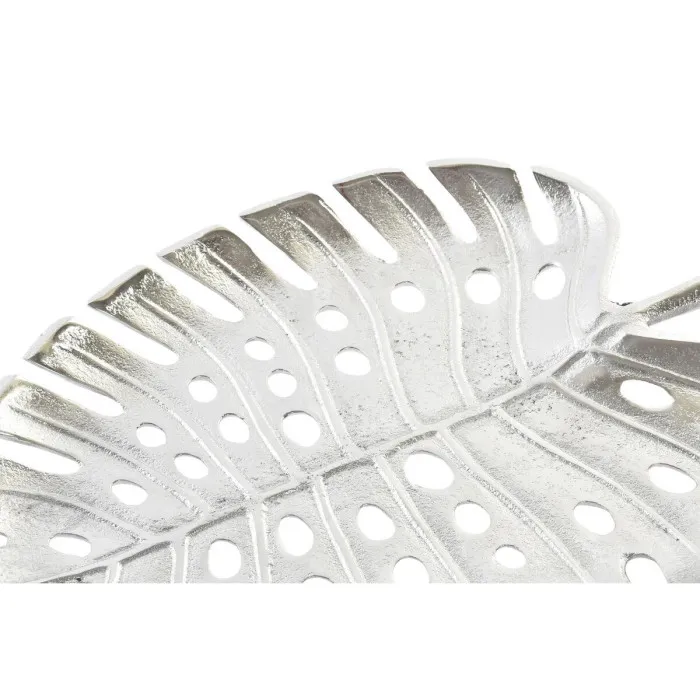 Centro de Mesa Home ESPRIT Plateado Aluminio Moderno Hoja de planta 38,5 x 28 x 3 cm