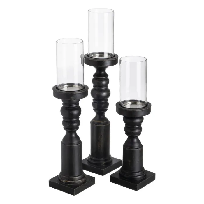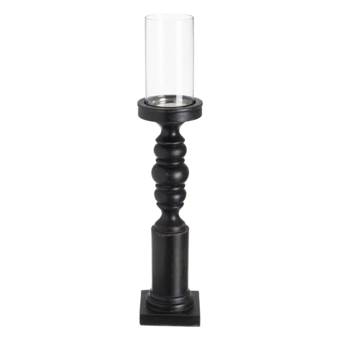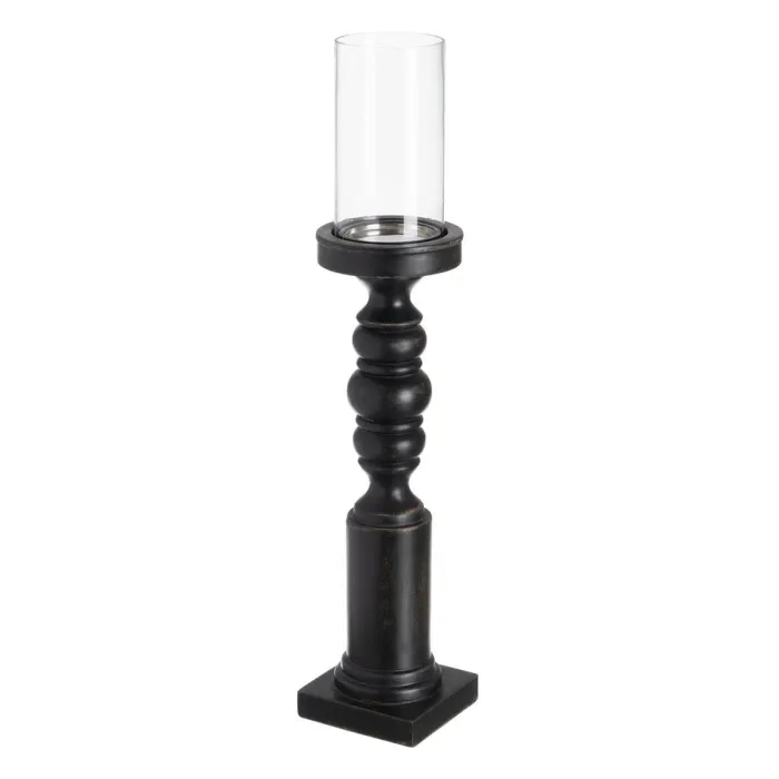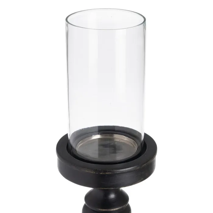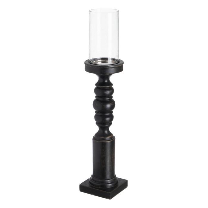 Portavelas Negro Madera Cristal 12 x 12 x 62 cm