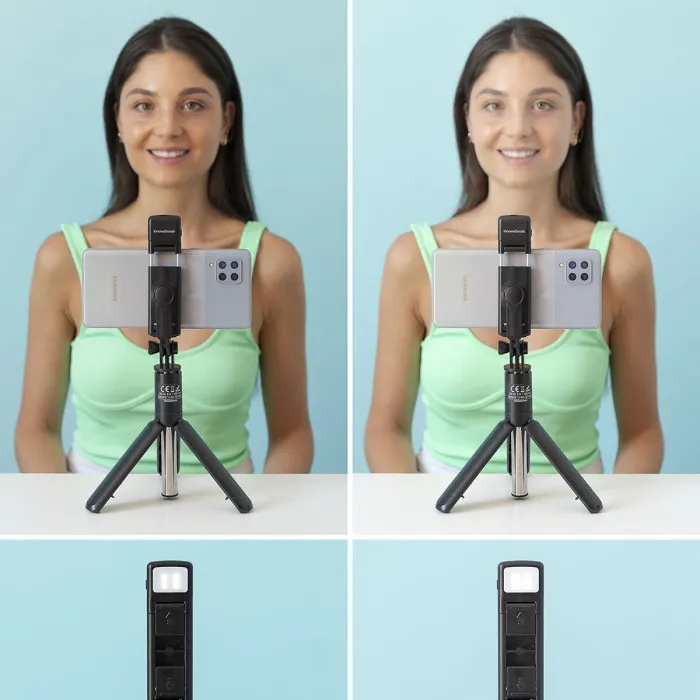 El trípode extensible para móvil con LED y mando Tridiex InnovaGoods es ideal para grabaciones de vídeos, transmisiones en directo, videollamadas, tutoriales, sesiones de maquillaje, selfies, etc. Permite mejorar la iluminación y la calidad de la imagen, logrando un resultado más óptimo y profesional. Gracias a su original diseño plegable y extensible, este versátil accesorio para móviles multifunción puede utilizarse como trípode o como palo selfie. Además, ocupa poco espacio totalmente plegado para poder llevarlo fácilmente a cualquier parte.