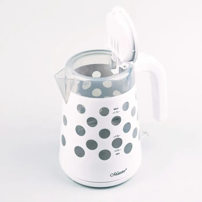 Además, el diseño ergonómico del hervidor lo hace fácil de usar, proporcionando un agarre cómodo para un manejo sencillo. El indicador de nivel de agua te permite ver la cantidad exacta de agua dentro, previniendo derrames o desbordamientos innecesarios. El hervidor también cuenta con una función de apagado automático para mejorar la seguridad, asegurando que se apague cuando el agua alcance el punto de ebullición o cuando ya no quede agua dentro. Esta tecnología reflexiva no solo añade seguridad a tu cocina, sino que también mejora la eficiencia energética, convirtiéndolo en una opción ecológica para tu hogar. En conclusión, el Hervidor Feel Maestro CB-1709 Blanco 2200 W 1.7 L es una perfecta fusión de estilo, conveniencia y alto rendimiento, convirtiéndolo en un artículo imprescindible para cada cocina.
