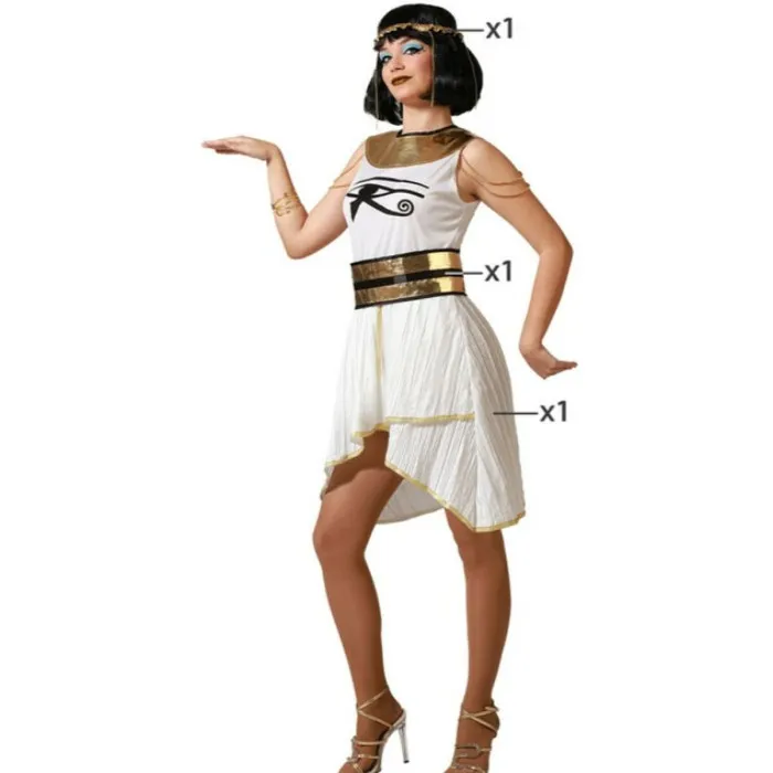 Inmersa en el escenario y abraza el encanto del antiguo Egipto con nuestro impresionante Disfraz para Adultos Mujer Egipcia. Este exquisito atuendo es perfecto para fiestas y eventos temáticos, permitiéndote capturar la esencia de una de las civilizaciones más fascinantes de la historia. Hecho completamente de 100% poliéster de alta calidad, este disfraz no solo es duradero, sino también cómodo de llevar, asegurando que puedas bailar toda la noche sin restricciones. La mágica combinación de colores blanco y dorado en el diseño refleja la estética lujosa a menudo asociada con la realeza egipcia, haciéndote el centro de atención en cualquier reunión.