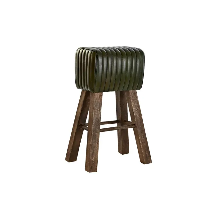 Taburete DKD Home Decor Madera Marrón Piel Verde (41 x 30 x 79 cm)