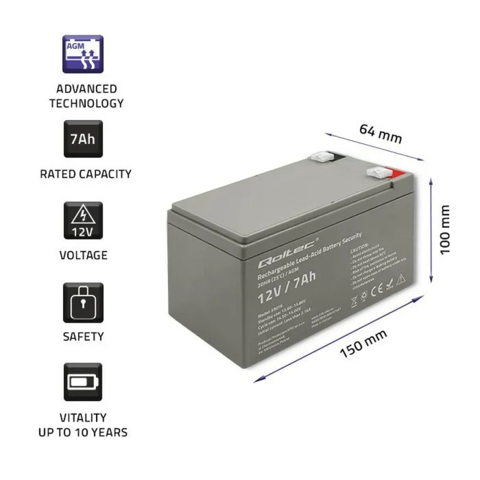 Batería para SAI Qoltec 53076 7 Ah 12 V