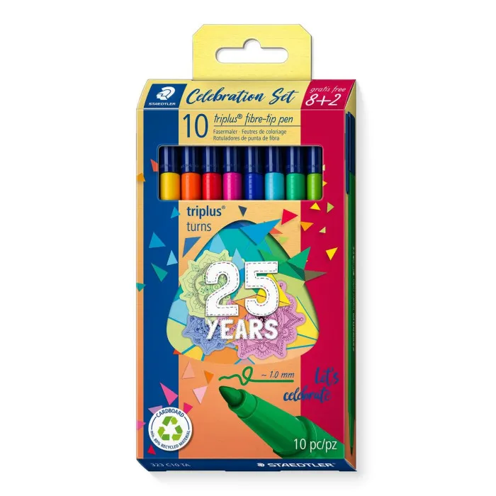 Si estás buscando añadir un toque de color a tus proyectos creativos, el Set de Rotuladores de Punta Fina Staedtler Triplus Celebration 10 Piezas Multicolor es tu compañero perfecto. Con una exquisita gama de tonalidades vibrantes, este set contiene diez rotuladores únicos que te permiten expresar tus ideas de la manera más viva e inspiradora. Diseñados con una forma triangular, estos rotuladores ofrecen un agarre perfecto para sesiones prolongadas de escritura o dibujo, lo que los convierte en una excelente opción para artistas, estudiantes o cualquier persona que ame ilustrar sus pensamientos. Cada rotulador cuenta con una punta fina de 1 mm que permite líneas precisas y resultados de alta calidad en papel, ayudándote a dar vida a tu imaginación.