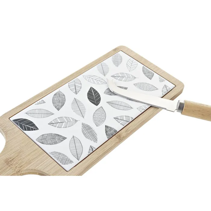 Set de Aperitivo DKD Home Decor Blanco/Negro Bambú Gres Hojas Cottage 3 Piezas 33 x 12 x 1 cm (3 piezas)
