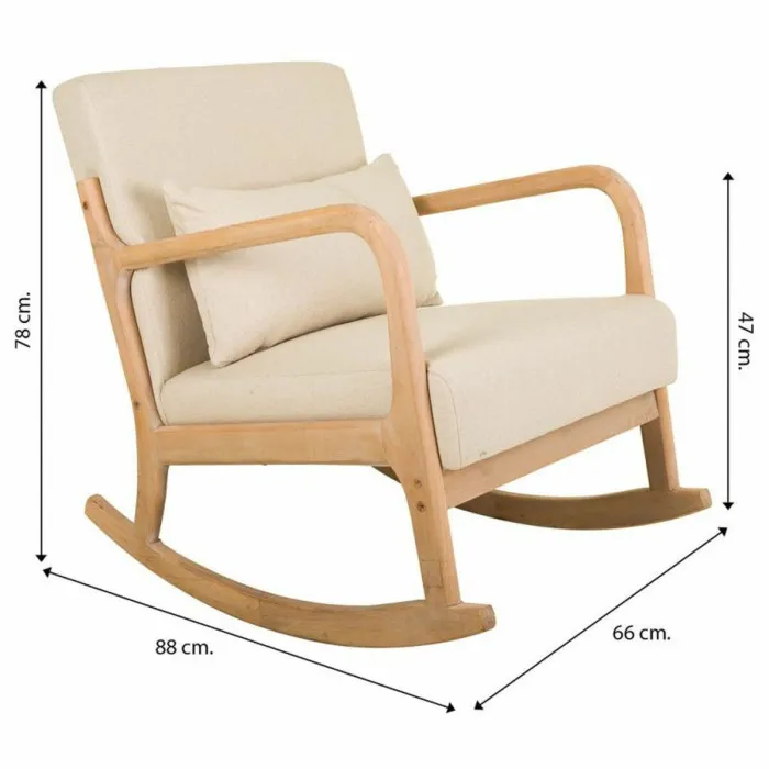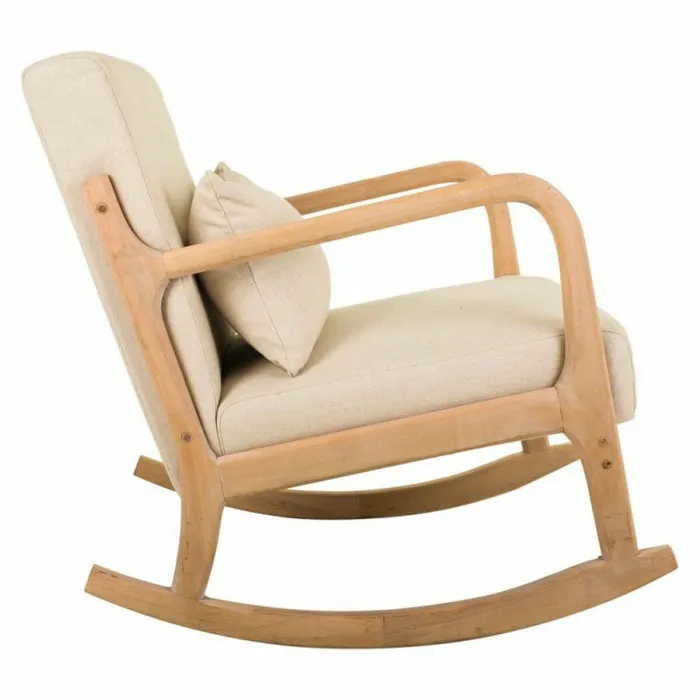 Silla mecedora Alexandra House Living Crema Goma Algodón Lino Madera 88 x 78 x 66 cm
