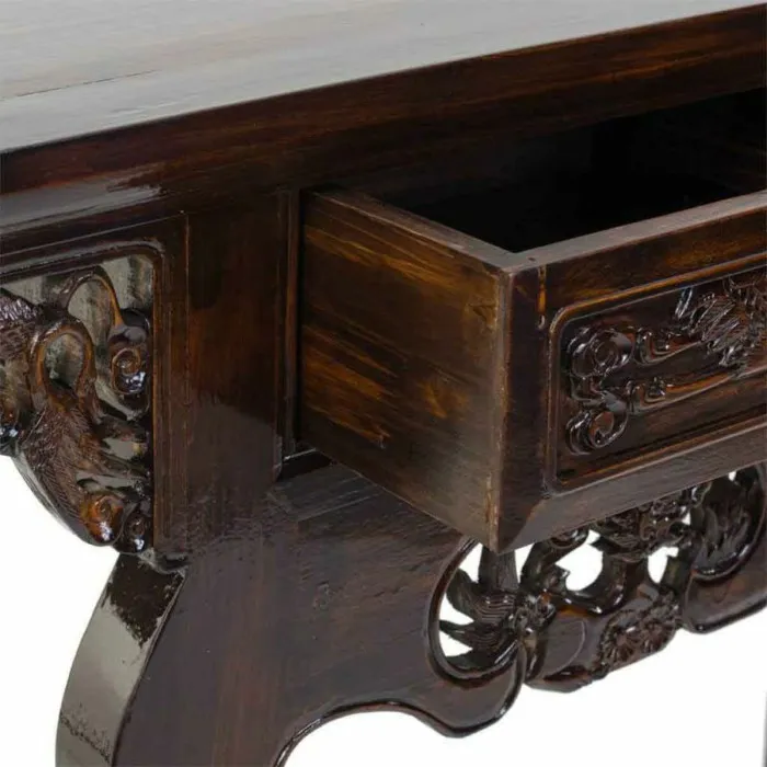 Esta mesita de entrada está diseñada con la practicidad en mente, con cajones espaciosos que ofrecen soluciones de almacenamiento convenientes para llaves, correo o cualquier otra necesidad cotidiana que desees mantener organizada y accesible. La innovadora combinación de estilo y utilidad asegura que esta mesa cumpla con las demandas de un hogar moderno mientras realza el encanto de tu decoración interior. Cada cajón está perfectamente incorporado en el diseño, manteniendo el perfil elegante de la mesa y asegurando que tengas un espacio dedicado para tus objetos personales.