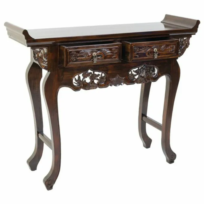 Si deseas añadir un toque de originalidad a tu hogar, lo harás con Mesita de Entrada con Cajones Alexandra House Living Madera Marrón Madera de Olmo 33 x 90 x 110 cm. Esta exquisita pieza de mobiliario no es solo una mesa; es una declaración de elegancia y funcionalidad. Elaborada con cuidado, la mesa cuenta con un impresionante acabado artesanal que refleja la calidad artística de su construcción. El rico color marrón de la madera de olmo irradia calidez, lo que la convierte en la adición perfecta para cualquier pasillo o espacio de vida. Sus amplias dimensiones proporcionan un generoso espacio en la superficie, permitiéndote exhibir artículos decorativos, fotos familiares o incluso una lámpara elegante que ilumine tu área maravillosamente.