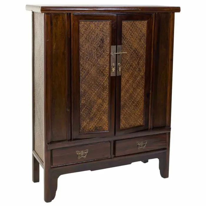 Una de las características destacadas del armario Alexandra House es su excepcional artesanía. Hecho de una combinación de ratán, MDF y madera de olmo, esta pieza exhibe un acabado artesanal que resalta la belleza natural de los materiales. El uso de ratán no solo añade un toque de elegancia, sino que también asegura durabilidad, mientras que la robusta construcción de MDF y madera de olmo maciza proporciona estabilidad y longevidad. Con sus dos puertas, este armario permite un fácil acceso a sus artículos almacenados, manteniendo su espacio ordenado y organizado.