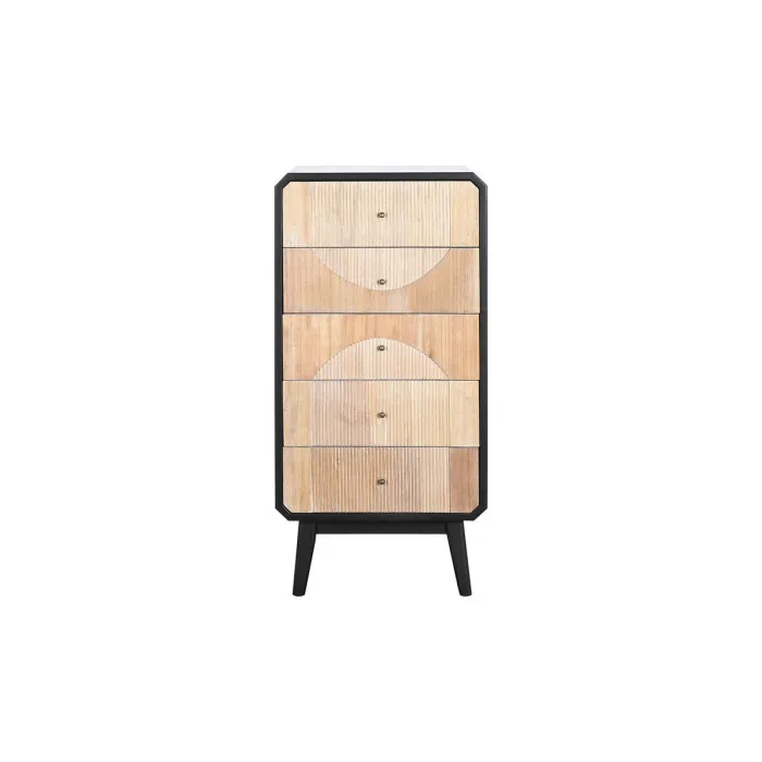 Además, el Chiffonier DKD Home Decor tiene una altura de 100 cm, lo que lo convierte en una superficie ideal para objetos decorativos o incluso una pequeña planta. Los tonos naturales de la madera aportan calidez al acabado negro, creando un contraste armonioso que atrae la mirada. Ya sea utilizado por sí solo o combinado con otros elementos decorativos, este chiffonier sin duda se convertirá en un punto focal en tu hogar. Eleva tu diseño interior con esta elegante y multifuncional pieza que refleja tu gusto por la calidad y el diseño.