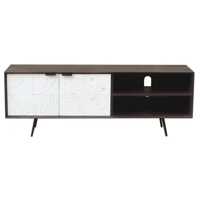 Además de su practicidad, este mueble para TV promueve un estilo de vida sostenible al utilizar madera de mango, un recurso renovable conocido por su belleza y solidez. La elección de un color marrón oscuro añade profundidad y riqueza a tu interior, mientras que ofrece versatilidad al combinarse con otros colores, como los acentos blancos. Transforma tu espacio en un refugio contemporáneo con el mueble para TV DKD Home Decor y disfruta del equilibrio perfecto entre forma y función en tu configuración de entretenimiento en el hogar. El diseño cuidadoso y los materiales de alta calidad garantizan que esta pieza resistirá la prueba del tiempo, convirtiéndola en una inversión valiosa para cualquier propietario.