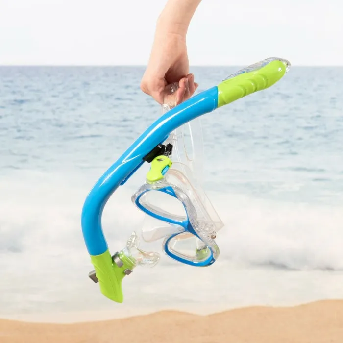 Introduce a tus hijos al vibrante mundo de la exploración submarina con las Gafas de Snorkel y Tubo para Niños AquaSport Azul (2 Unidades). Diseñadas específicamente para jóvenes aventureros de 7 años en adelante, este conjunto de gafas de snorkel y tubo está diseñado para proporcionar un ajuste cómodo mientras se asegura una visibilidad óptima bajo el agua. El llamativo color azul no solo atrae a los niños, sino que también aumenta su emoción por las aventuras oceánicas. Los materiales de primera calidad utilizados en la construcción—silicona, policarbonato y vidrio templado—hacen que esta máscara de buceo sea duradera, segura y resistente al desgaste de los entusiastas jóvenes snorkelers. Con un diseño ceñido pero cómodo, estas gafas crean un sello fiable alrededor de los ojos, minimizando la intrusión de agua y proporcionando una experiencia más placentera en la piscina o el océano.
