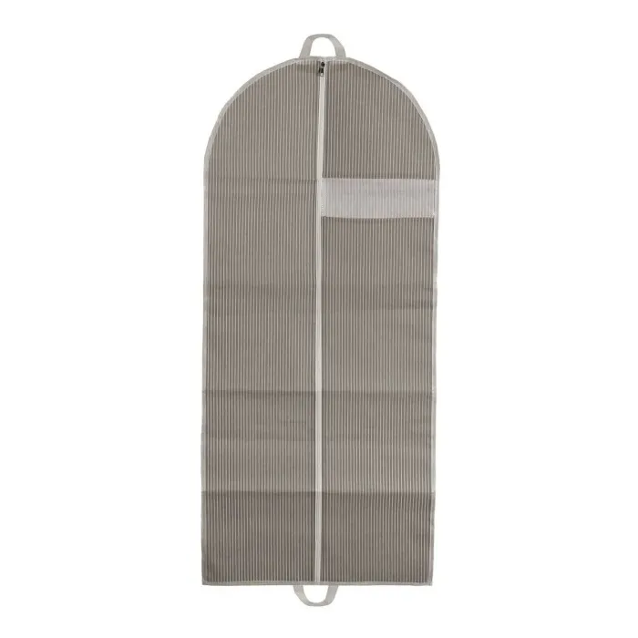 La Funda de Traje Versa Rayas no se trata solo de apariencia; también es altamente funcional. Con un tamaño aproximado de 135 x 60 cm, proporciona suficiente espacio para tus trajes y chaquetas, lo que la convierte en una opción ideal tanto para almacenamiento a corto como a largo plazo. El diseño cuidadoso presenta un sistema de cierre seguro, manteniendo tus prendas protegidas del polvo mientras permite un acceso fácil cada vez que lo necesites. Esta funda es perfecta para quienes viajan frecuentemente o simplemente desean mantener su ropa formal en perfectas condiciones en casa. Su naturaleza liviana significa que se puede llevar fácilmente en tu equipaje, lo que la convierte en un artículo imprescindible para los viajeros frecuentes.