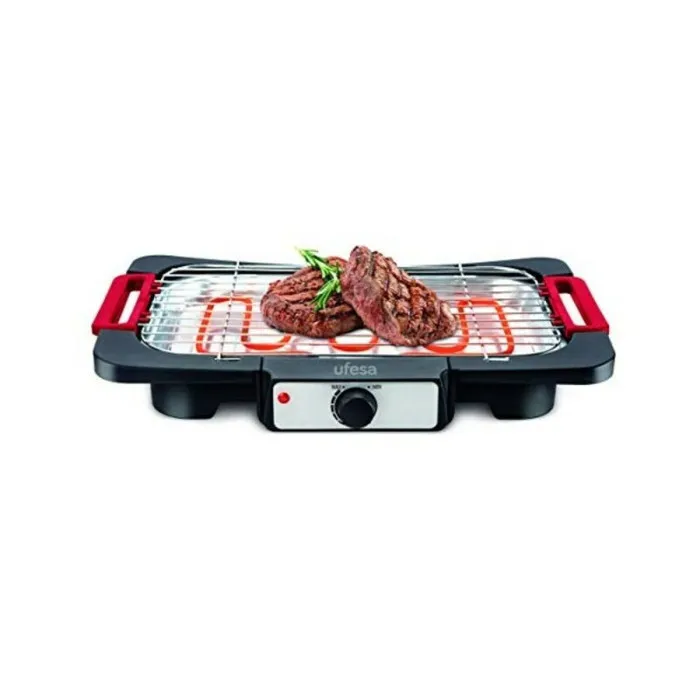Diseñada pensando en la conveniencia del usuario, la UFESA Rodeo Grill está equipada con un termostato ajustable que te permite establecer la temperatura perfecta para tus necesidades de cocción. La tecnología energética eficiente, junto con un sistema de calefacción termoeléctrico, asegura que la parrilla se caliente rápidamente y mantenga una temperatura uniforme en su superficie de cocción de aproximadamente 41 x 23 cm. La visibilidad se mejora con el indicador LED, que se enciende cuando la parrilla está en funcionamiento, permitiéndote monitorear tu progreso de cocción de un vistazo. La seguridad también es una prioridad; la función de apagado automático proporciona tranquilidad, permitiéndote desviar tu atención de la parrilla sin la preocupación de sobrecalentamiento.