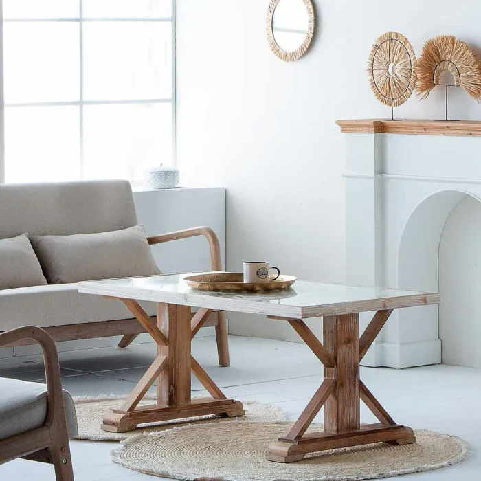 El cálido tono marrón de esta mesa añade un toque de calidez, haciéndola adaptable a una variedad de estilos de interior, desde moderno hasta rústico. Sus generosas dimensiones de 60 x 50 x 120 cm ofrecen una amplia superficie, haciéndola lo suficientemente versátil para diversos usos—ya sea que necesites una mesa de café para tus reuniones acogedoras, un área de exhibición elegante para tu decoración favorita, o un espacio de trabajo práctico para tus tareas. La elegante tapa de vidrio complementa las robustas patas de madera, añadiendo un toque contemporáneo mientras asegura una durabilidad duradera.