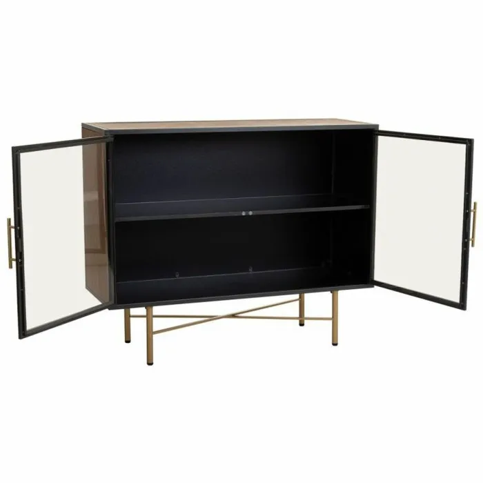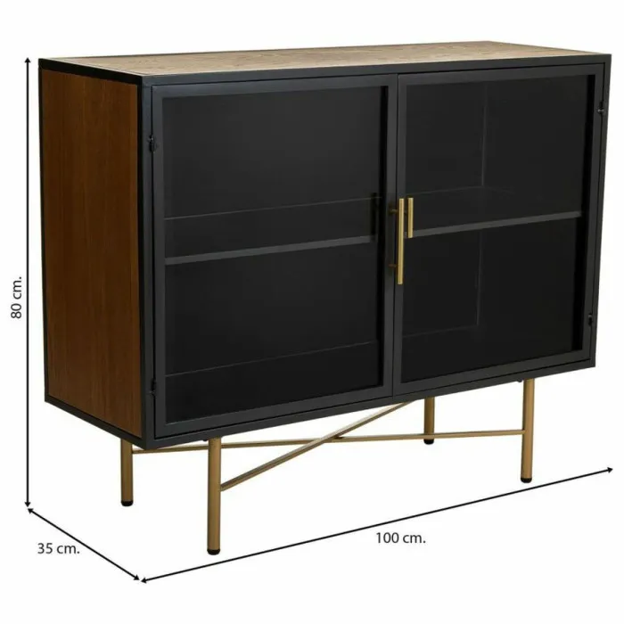 Aparador Alexandra House Living Marrón Metal Vidrio Madera de abeto Madera MDF 35 x 80 x 100 cm