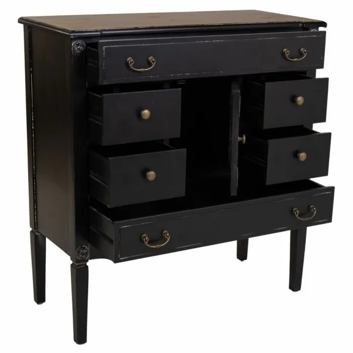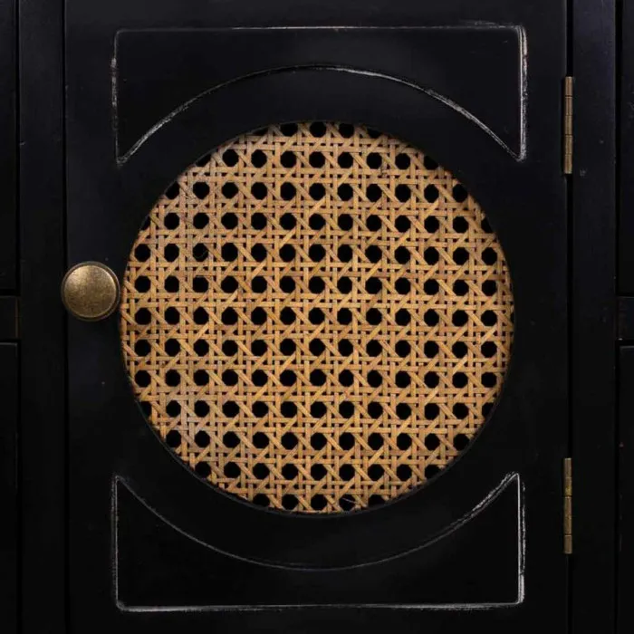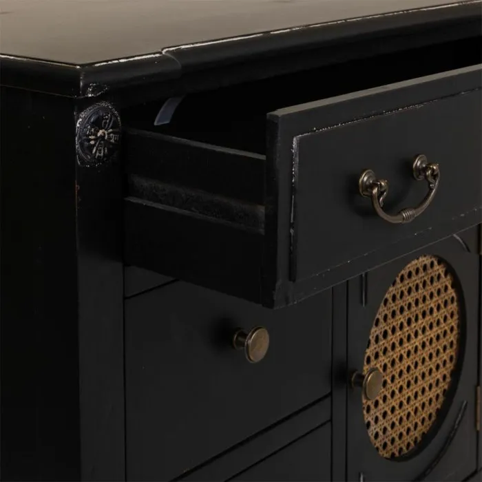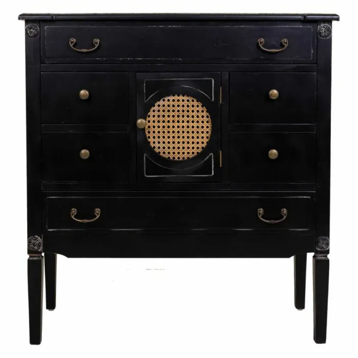 Cómoda Alexandra House Living Negro Ratán Madera de abeto Madera MDF 38 x 90 x 85 cm