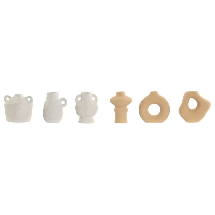 Set de 3 Jarrones Home ESPRIT Blanco Beige Gres 32 X 11,5 X 9 cm (3 Piezas) (2 Unidades)