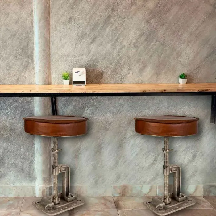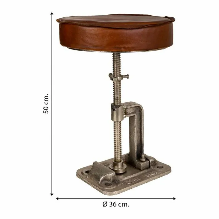 Taburete Alexandra House Living Marrón Cuero Madera Hierro 36 x 50 x 36 cm