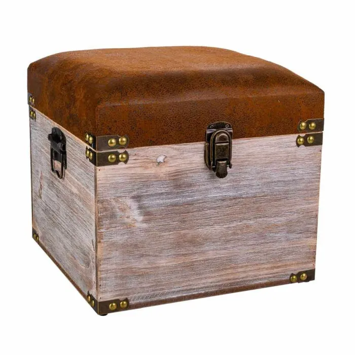 Taburete Alexandra House Living Marrón Poliuretano Madera MDF 30 x 28 x 30 cm
