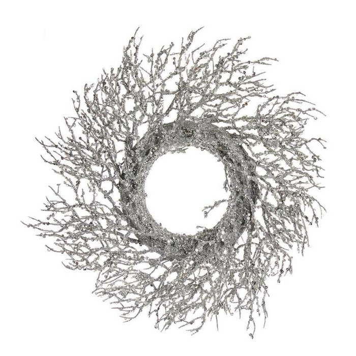 Corona de Navidad Rama Plateado Plástico 50 x 10 x 50 cm (2 Unidades)