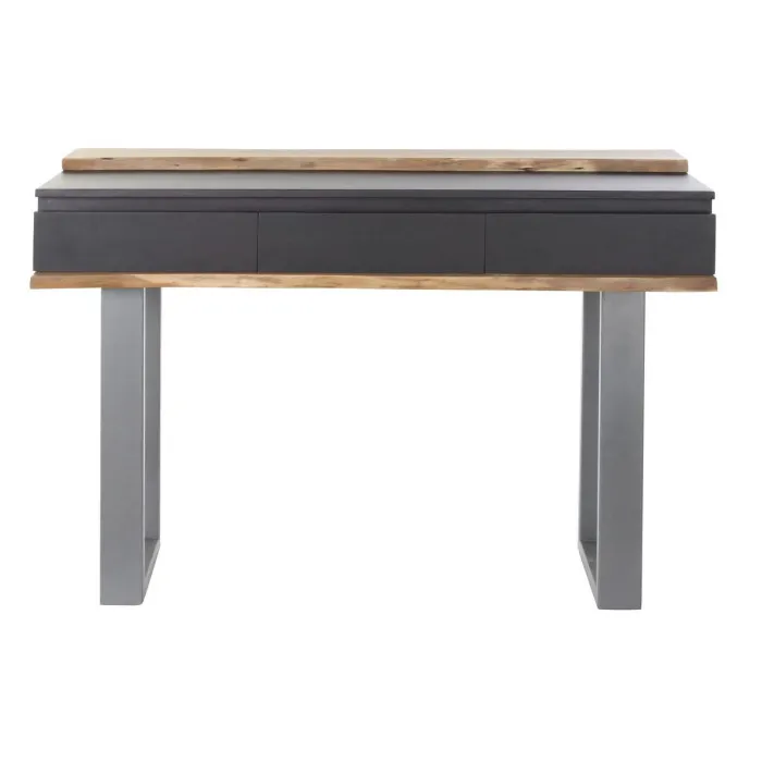 La consola presenta tres amplios cajones que ofrecen abundantes oportunidades de almacenamiento para tus pertenencias. Ya sea que necesites un lugar para guardar documentos, llaves u otros artículos cotidianos, esta consola satisface tus necesidades sin comprometer el estilo. El diseño minimalista de los cajones evoca una sensación de elegancia refinada, mientras que las líneas suaves y la estructura robusta destacan la artesanía detrás de esta pieza. Las dimensiones de la mesa consola—115 cm de largo, 40 cm de ancho y 80 cm de alto—la hacen perfectamente adecuada para entradas, salas de estar o incluso como un acento decorativo en tu área de comedor.
