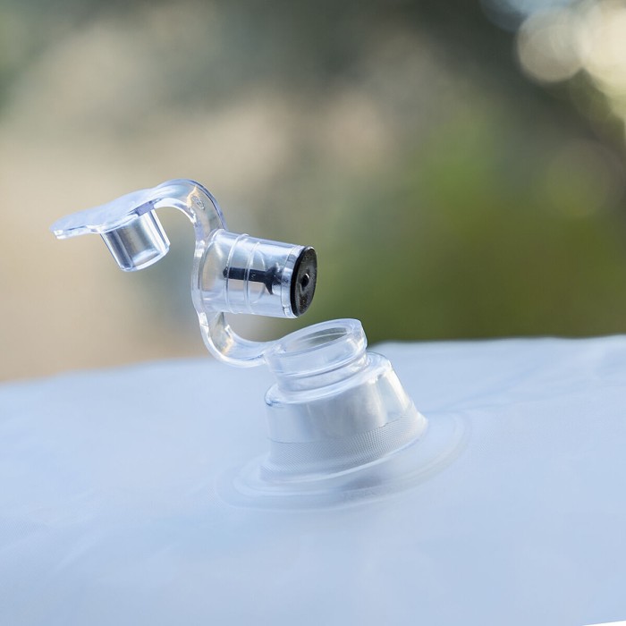 Este puff flotante con luz LED debe hincharse evitando una presión excesiva. Para deshincharlo, debe retirarse la válvula de seguridad.
