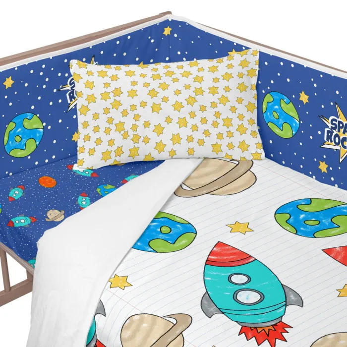 Protector de Cuna HappyFriday Mr Fox Space rocket Multicolor 210 x 40 cm