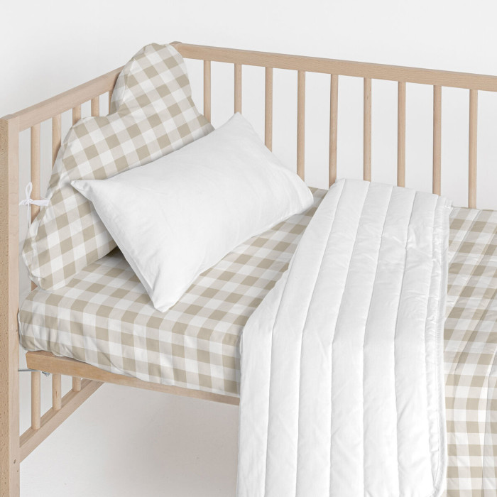 Protector de Cuna HappyFriday Basic Kids Vichy Beige 60 x 40 cm