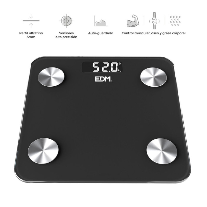 Báscula Digital de Baño EDM 07613 Body Composition Negro 180 kg