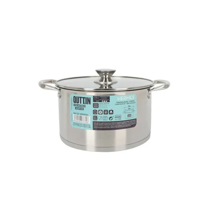 Olla con Tapa de Cristal Quttin Hermes Acero 5,5 L (4 Unidades)