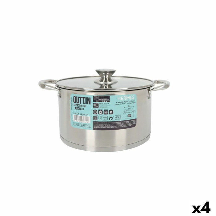 Olla con Tapa de Cristal Quttin Hermes Acero 5,5 L (4 Unidades)