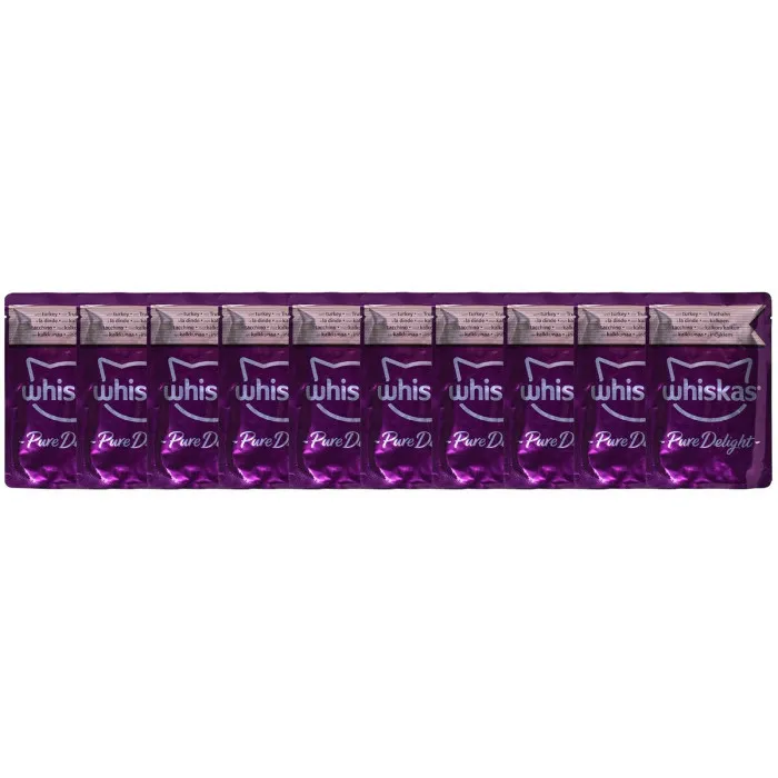 Más allá de los beneficios inmediatos para la salud, Whiskas Pure Delight ha sido desarrollado pensando en la felicidad de tu gato. Cada bolsa individual de 85 g es fácil de abrir y controlada en porciones, lo que hace que la hora de la comida sea sin complicaciones para los dueños de gatos ocupados. Sírvela como una comida por sí sola o mézclala con comida seca para agregar variedad. Con 40 bolsas incluidas, descubrirás que mantener a tu gato feliz y saludable nunca ha sido tan fácil ni tan conveniente. Mima a tu querido mascota con los sabores gourmet de Whiskas Pure Delight y míralo disfrutar de cada bocado, disfrutando no solo de una comida, sino de una verdadera experiencia culinaria.