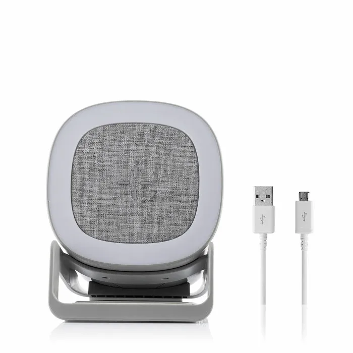 este moderno altavoz cargador inalámbrico con LED es muy fácil de usar. Por su original y versátil diseño, puede utilizarse como cargador, altavoz, lámpara y soporte para móviles. Se puede usar en casa, en la oficina, en teletrabajo, salones, dormitorios, etc.