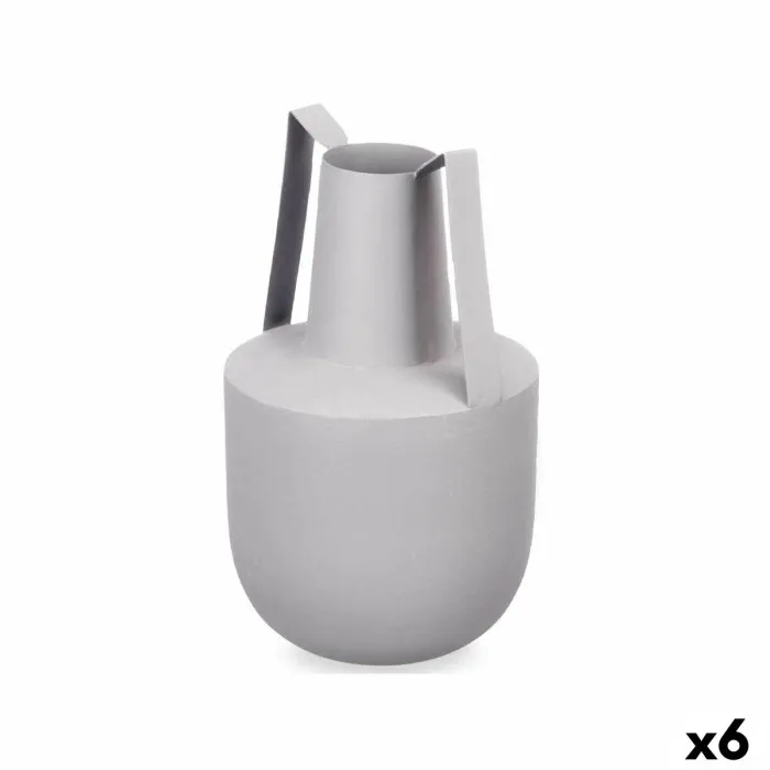 Jarrón Con asas Gris Acero 14 x 24 x 14 cm (6 Unidades)