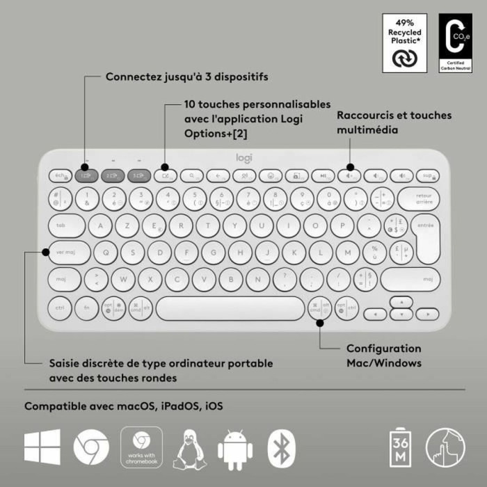 Teclado Bluetooth con Soporte para Tablet Logitech K380 Francés Blanco AZERTY