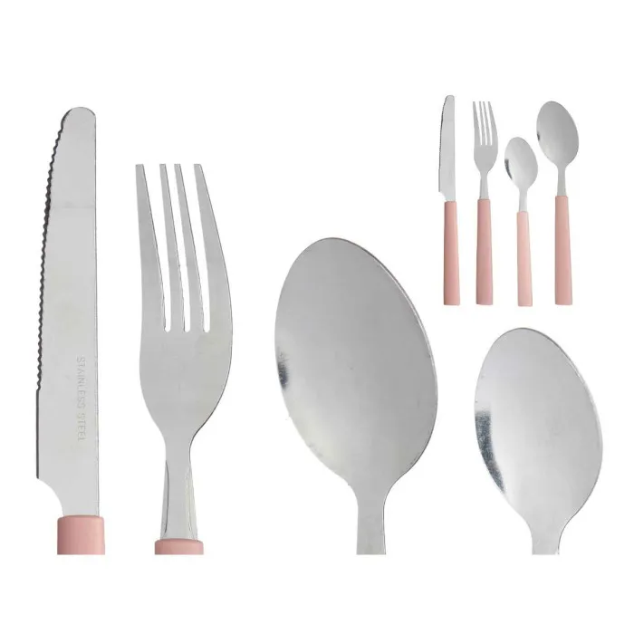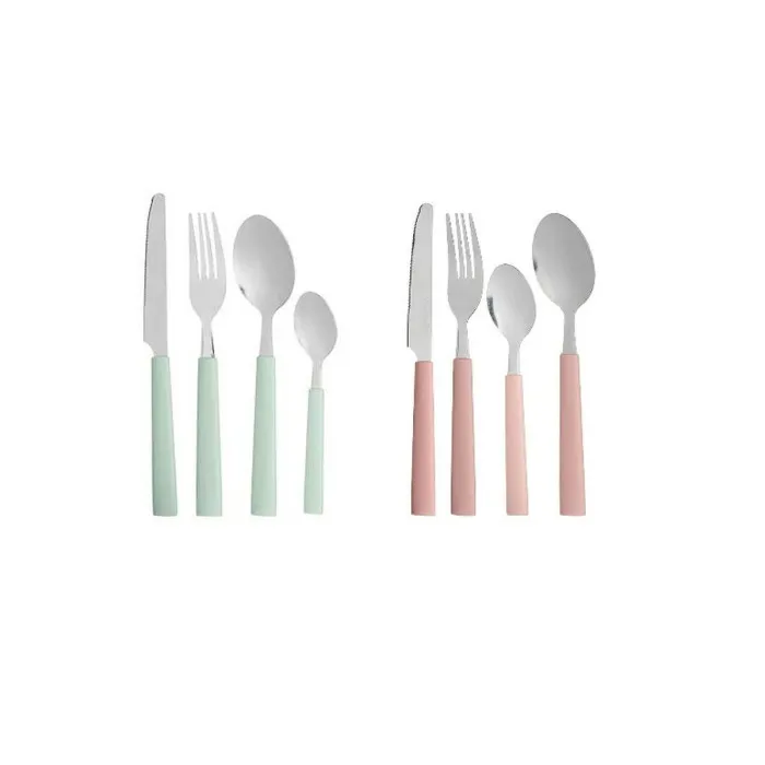Set de Cubiertos Kinvara KT166096-1 Verde Rosa Plateado Acero Inoxidable Plástico (12 Unidades)