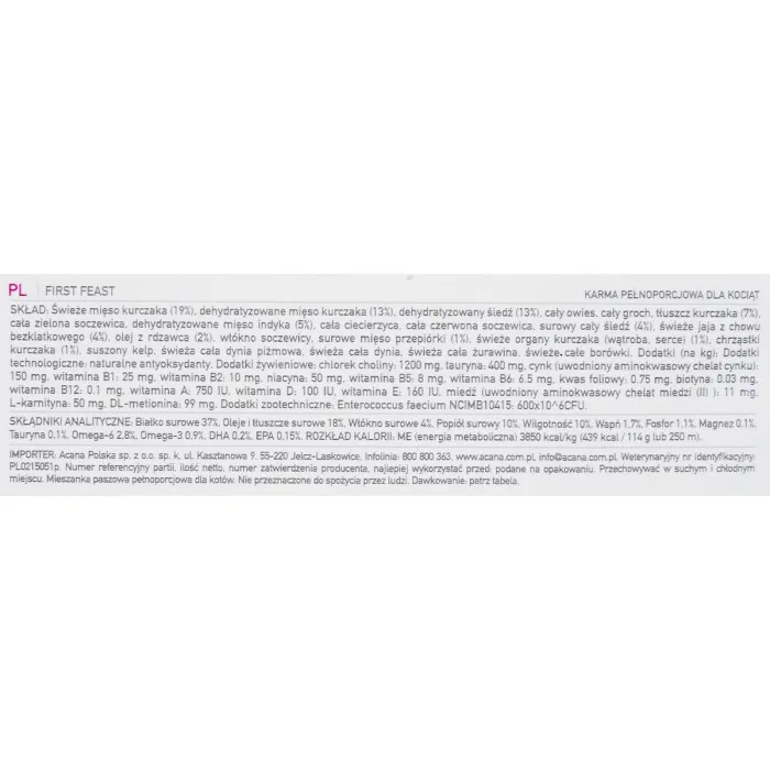 Si estás buscando comida para gatos premium que se adapte a las necesidades dietéticas únicas de tu amigo felino, no busques más que Comida para gatos Acana First Feast Birds 1.8 kg. Este producto excepcional no es solo una comida; es una dieta cuidadosamente formulada diseñada para apoyar la salud y vitalidad de tu gato, especialmente durante su fase de crecimiento. Con ingredientes de alta calidad, esta comida para gatos enfatiza un perfil rico en proteínas, incluyendo fuentes suculentas como cordero y aves. A tu gato le encantará el sabor y tú apreciarás los beneficios nutricionales que vienen con cada bocado.
