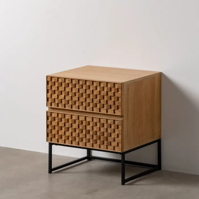 Mesita de Noche MARIGNI Negro Natural Hierro Madera de fresno Madera MDF 51,5 x 42 x 56,5 cm