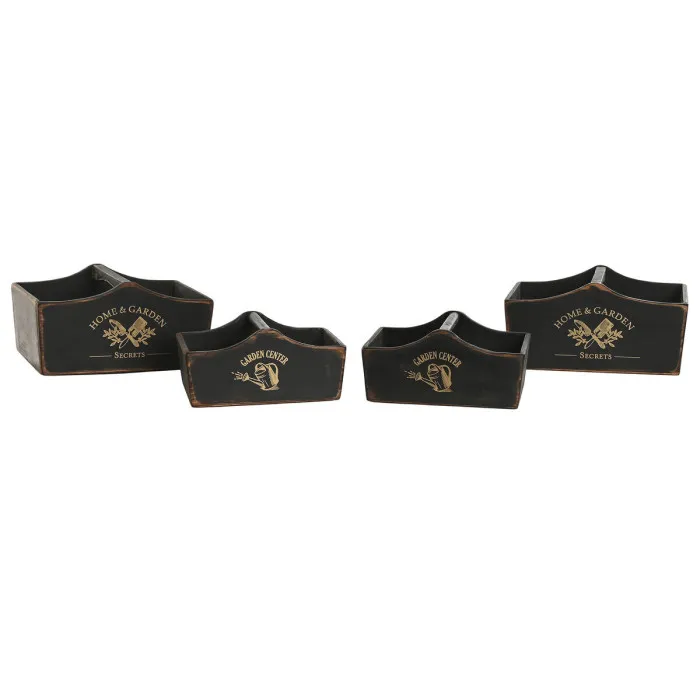 Juego de Bandejas Home ESPRIT Negro Madera de abeto 35 x 22 x 18 cm