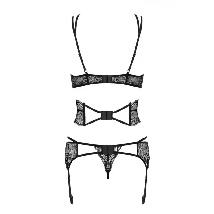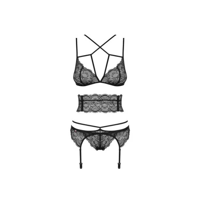 Conjunto de Lencería con Encaje Obsessive Frivolla Negro S/M