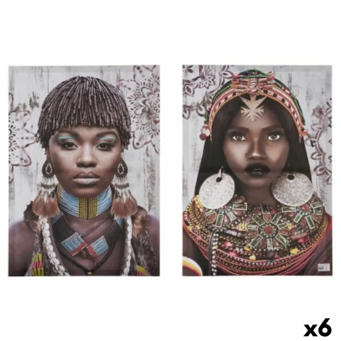Juego de 2 cuadros Lienzo Africana 70 x 50 x 1,5 cm (6 Unidades)